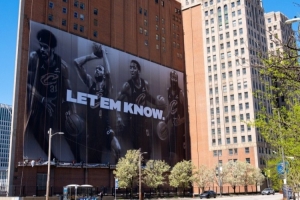骑士主场附近悬挂全新巨幅海报 阿伦莫布里米切尔哈登四巨头亮相