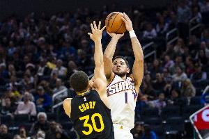 体育资讯4月18日讯 NBA附加赛,勇士首节15-33落后太阳。