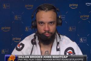 赛后,狄龙接受采访时谈到了对阵雷霆的心态。他说道:“相信我们每天都在做的事,努力打球,珍惜每一个回合,对阵NBA里的任何人,我都相信我的队友。我们会上场‘偷走’G1的胜利。(We're going to go out there and steal Game 1.)”