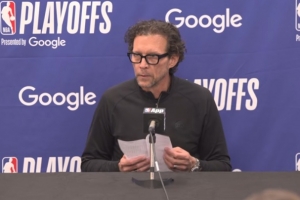 斯奈德:“我觉得我们在转移球方面本可以做得更好。另外我想说,即便你能成功冲击内线并把球分出来,最终获得的也不一定是你最想要的投篮机会。去定义什么是好的投篮机会真的很难。尤其是在季后赛的舞台上,你必须让球员们保持自信,相信自己能够主动出击、创造得分机会。并不是你每一次出手的空间都能像训练时那样开阔,那是比赛中不切实际的奢望。你能做的就是不断运转,去争取尽可能最好的出手机会。我们知道该怎么打,现在需要的就是坚持执行,并在各个方面都精益求精。这毕竟只是系列赛的首战,我们会回去寻找改进的空间,我知道球员们心里也很清楚这一点。”