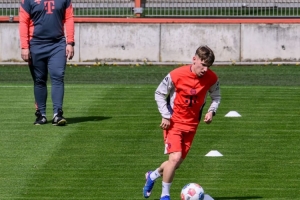 卡尔正在进行有球训练。为了做好准备,这位进攻型中场在周一——球队休息日,也是在夺冠后的第二天——在康复教练本杰明·索默的指导下,于塞贝纳大街的训练基地进行了一次额外的训练。上午10点03分,卡尔精神抖擞地踏上了球场。在30分钟的训练中,这位德国国脚在训练中肌肉拉伤11天后,首次能够进行带球练习。这位进攻天才在恢复跑步两天后,就已经能够绕着迷你锥进行带球训练了。随后,他进行了多次不同速度的跑步练习,并进行了稳定性训练。